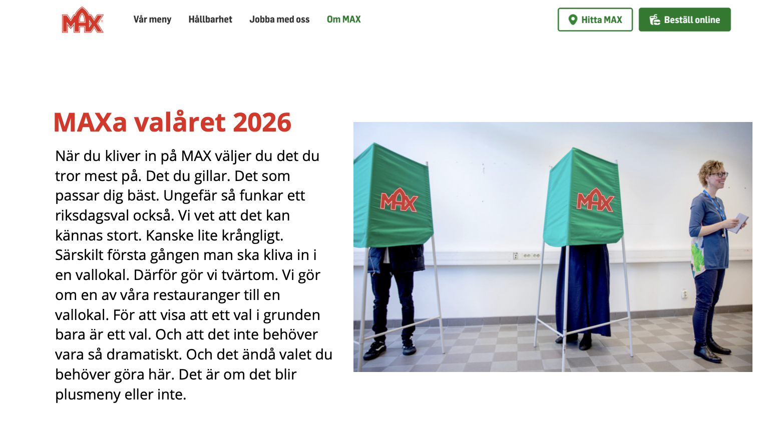 Utforma en MAX-restaurang likt en vallokal för att avdramatisera för unga när det är dags att rösta.